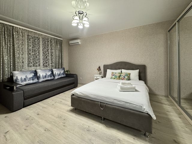 Є велике зручне двоспальне ліжко та розкладний диван, щоб кожен мав достатньо місця для відпочинку. Також є місткі шафи для речей.