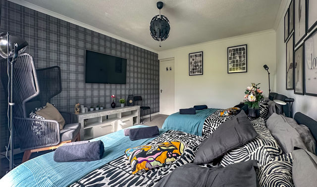 Escape to this charming and stylish home in Clydebank in a Park, just 25 minutes from Glasgow Central and 13 min by car to the airport of Glasgow, with Loch Lomond only 30 minutes away. Ideal for up to 8 guests, this house features 3 comfortable bedrooms, a fully equipped kitchen and bathroom with a shower. Whether you're visiting for work or leisure, this home is the perfect base for exploring both the vibrant city and the stunning Scottish countryside. A baby cot can be provided upon request