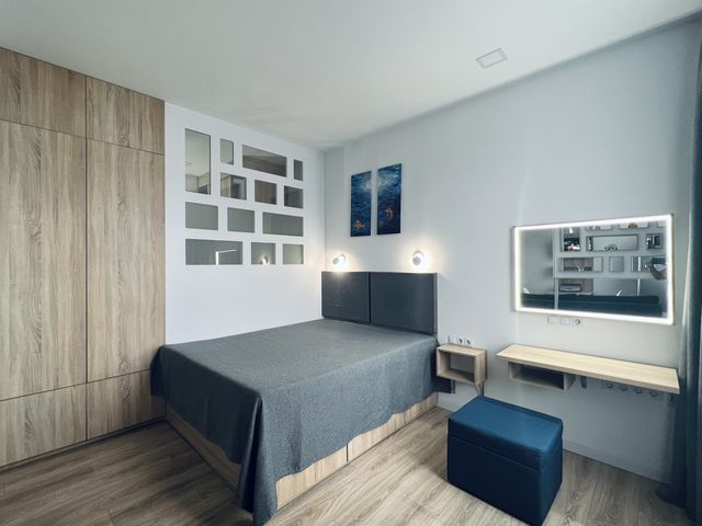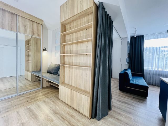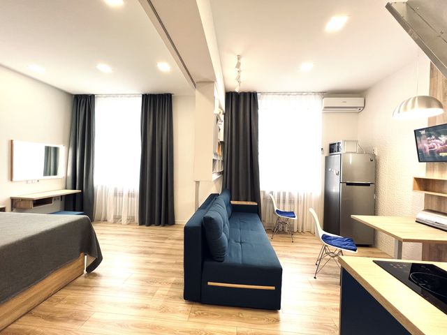 Оренда однокімнатної кухні— студії з євроремонтом проспект Яворницького 54, ліжко, диван, вся побутова техніка , без балкону. Вікна виходять на проспект Яворницького, а саме готель Україна. Квартира утеплена, тому взимку дуже тепло, а влітку прохолодно.