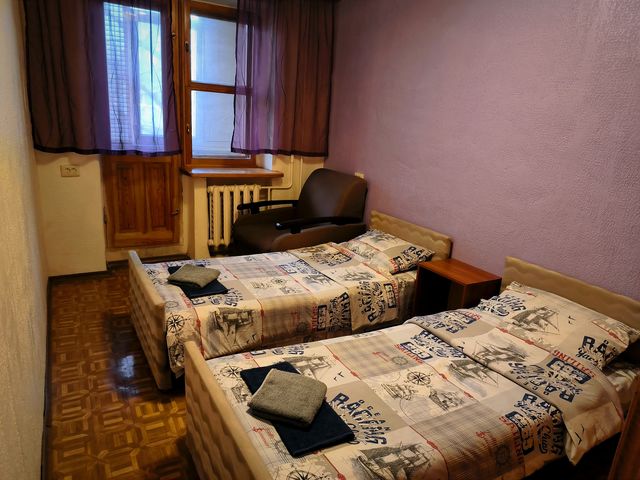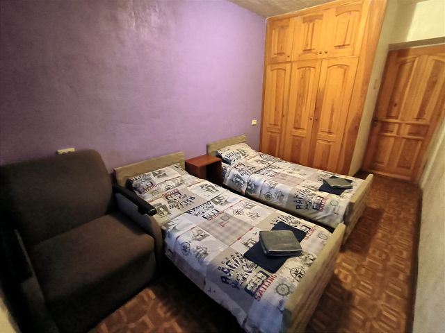 8 спальных мест 2+2+1+1+1+1: большая 2-х спальная кровать 1,8м, диван-кровать, угловой диван, две односпальные кровати (все кровати с хорошими ортопедическими матрасами), кресло-кровать. Есть стиральная машина, холодильник, СВЧ, электрический чайник, ТВ+смарт, кондиционер, wi-fi, постельное белье, полотенца!