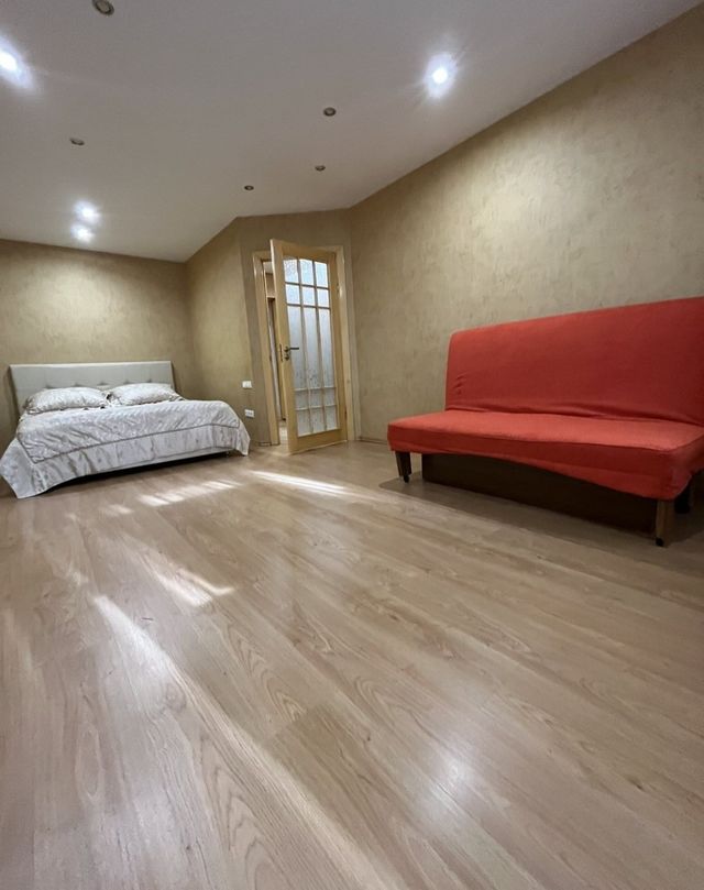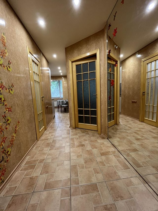 Квартира просторная, с балконом, гардеробной, кухней и санузлом с ванной.