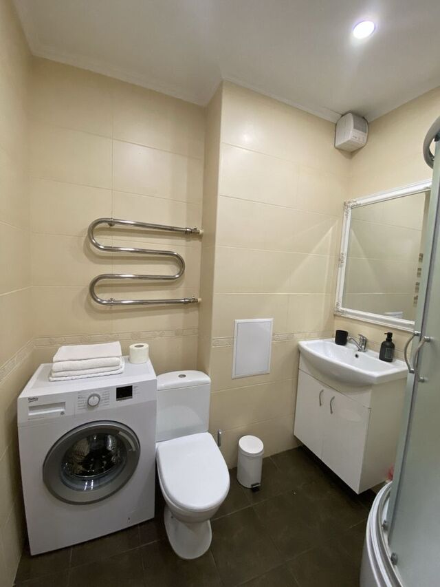 Ванна кімната: Сучасна ванна кімната обладнана душовою кабіною, умивальником, туалетом, а також пральною машиною. Гостям надаються чисті рушники та засоби особистої гігієни.