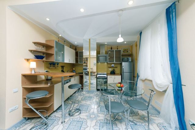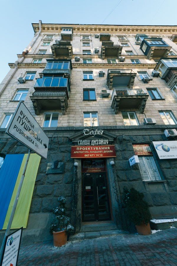 Рядом с домом есть торговые центры, супермаркеты, множество кафе, ресторанов, магазинов. В 2 минутах ходьбы - Крещатик и Майдан Независимости, в 10 минутах - станции метро Театральная и Дворец спорта, Бессарабский рынок, торговые и бизнес-центры: Глобус, Парус, Мандарин Плаза, Гулливер.