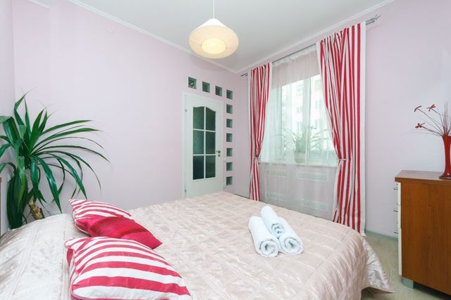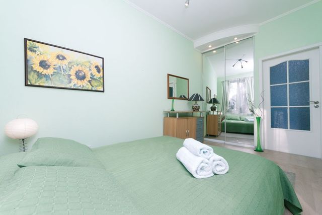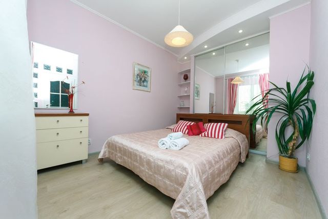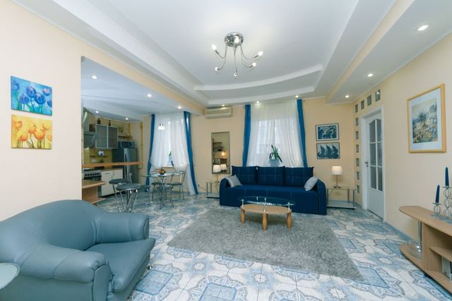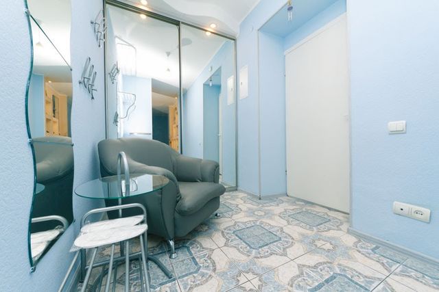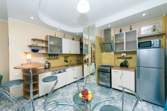 Чистая и уютная квартира находится на 2 этаже в самом центре Киева. В доме есть лифт, парадное чистое, закрывается на кодовый замок.