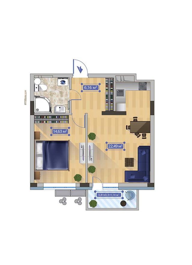 Санвузол з душем і підлогою з підігрівом. До послуг гостей балкон із краєвидом. Підземний паркінг доступний за окрему плату.
