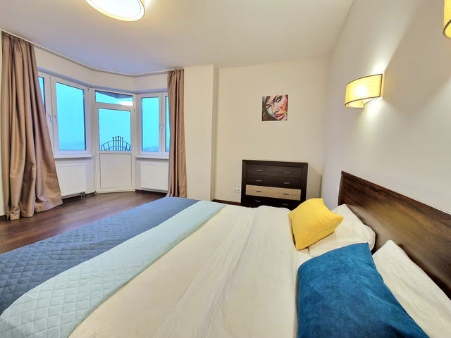 Зі спальні та кухні шикарний панорамний вид на весь Київ , яким можна насолоджуватись, відпочиваючи)