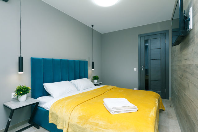 3-комнатная квартира класса люкс, 2 спальни + диван-кровать (максимум 6 человек), две ванные комнаты, джакузи, душевая кабина, 3 кондиционера, интернет Wi-Fi, кабельное телевидение. 9 этаж, лифт, балкон, кладовка. Общая площадь 60 кв.