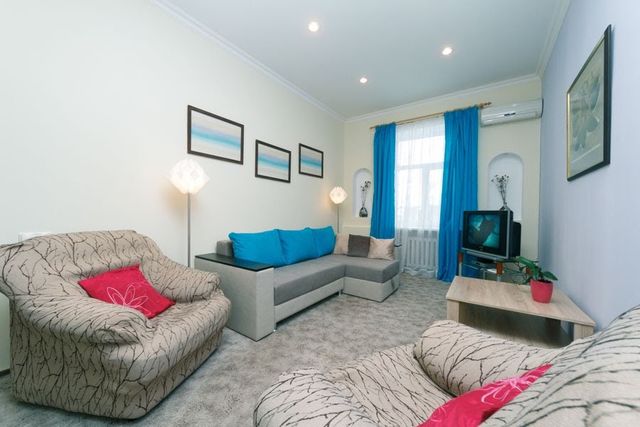 Комфортная двухкомнатная квартира расположена на 2 этаже 5-этажного кирпичного дома в центре Киева. Спальня оснащена двуспальной кроватью с ортопедическим матрасом, зеркальным шкафом. Имеется балкон, выходящий в тихий двор. В другой комнате есть раскладывающийся диван, журнальный стол, 2 кресла, кабельное ТВ, Wi-Fi, кондиционер. На кухне имеется вся необходимая бытовая техника: холодильник, электрочайник, кухонные принадлежности, микроволновая печь, газовая плита. В ванной комнате: сантехника, фен, стиральная машина. Постельное бельё, полотенца предоставляются. Рядом находятся торговый центр Гулливер, торговый центр Мандарин-Плаза, бизнес-центр Горизонт, Александровская (Октябрьская) больница, супермаркет Сильпо. Квартира находится в 5 минутах ходьбы от станций метро Дворец Спорта, Кловская, Бессарабского рынка, Крещатика, бизнес-центра Парус, развлекательного комплекса Арена Сити. Квартира предназначена для комфортного пребывания четырех человек. Спальных мест: 2+2. Парковка, трансфер