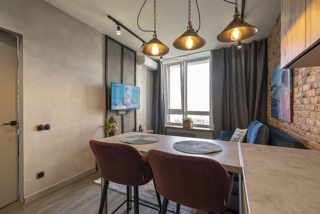 Пропонуємо до Вашої уваги 2-кімнатні апартаменти в стилі лофт, ремонт весна 2021 року. Загальна площа 45 кв м. Поверх 18, 3 ліфти в будинку.