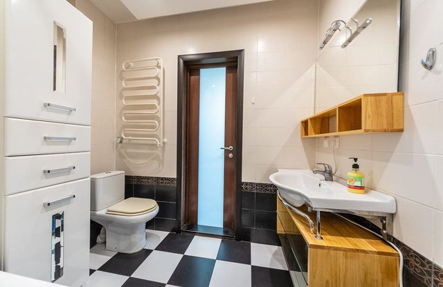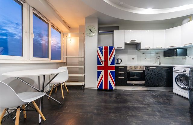Стильна квартира, з приємним виглядом, має відмінне місце та розвинену інфраструктуру району. Адреса : Дніпровська набережна 26, метро Осокорки за 4 хвилини пішки.