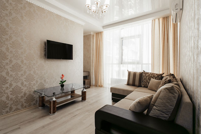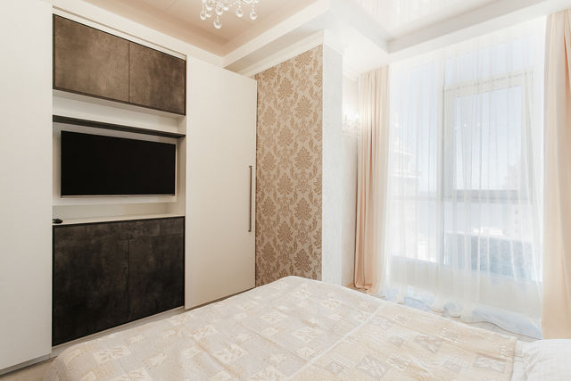 Двуспальная кровать, раскладной диван, варочная панель, духовой шкаф, микроволновая печь, электрический чайник, утюг, фен, стиральная машина, 2 плазменных телевизор, 1 кондиционер, душевая кабина, высокоскоростной wi-fi, посуда, постельное белье .