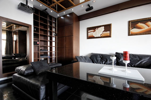 Планувальне рішення квартири передбачає: кухню-студію, спальню, санвузол, терасу. Апартаменти повністю обладнані меблями та побутовою технікою. Встановлена італійська сантехніка, плитка, індивідуальне опалення, на підлозі — паркет.