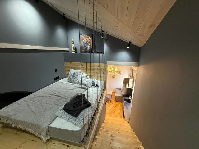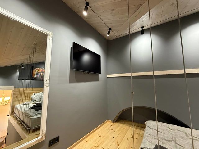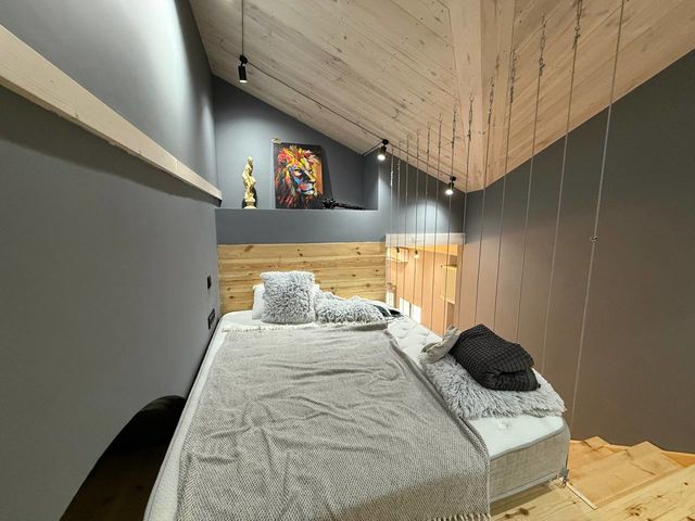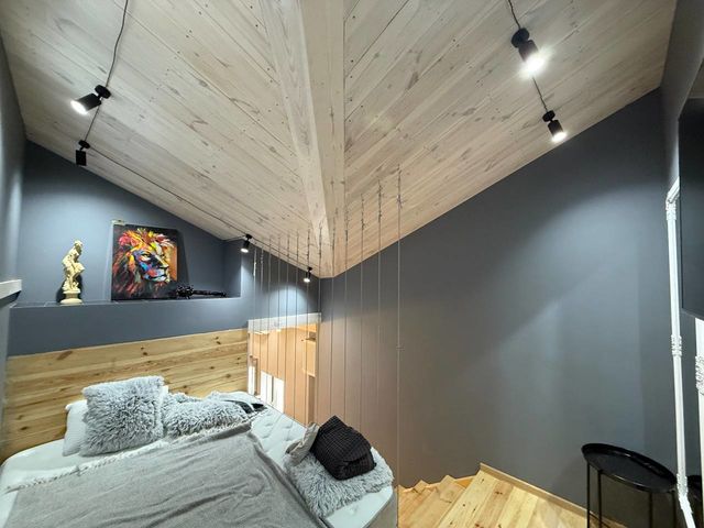 – На другому рівні — повноцінна спальня з великим ліжком для двох