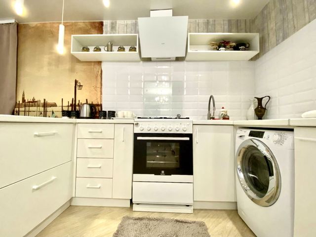 Однокомнатная квартира в тихом и уютном районе Полтавы, в самом центре города. Ее теплые и светлые тона подымут Вам настроение, а двуспальная кровать с ортопедическим матрасом и французским постельным бельем подарит Вам долгожданный отдых. Квартира находится в самом сердце Полтавы возле корпусного сада в новом доме, парковка находится во дворе прямо под окнами. Имеет замечательное месторасположение. Оборудована большим балконом. Рядом находится Национальный педагогический университет и Полтавская государственная аграрная академия.